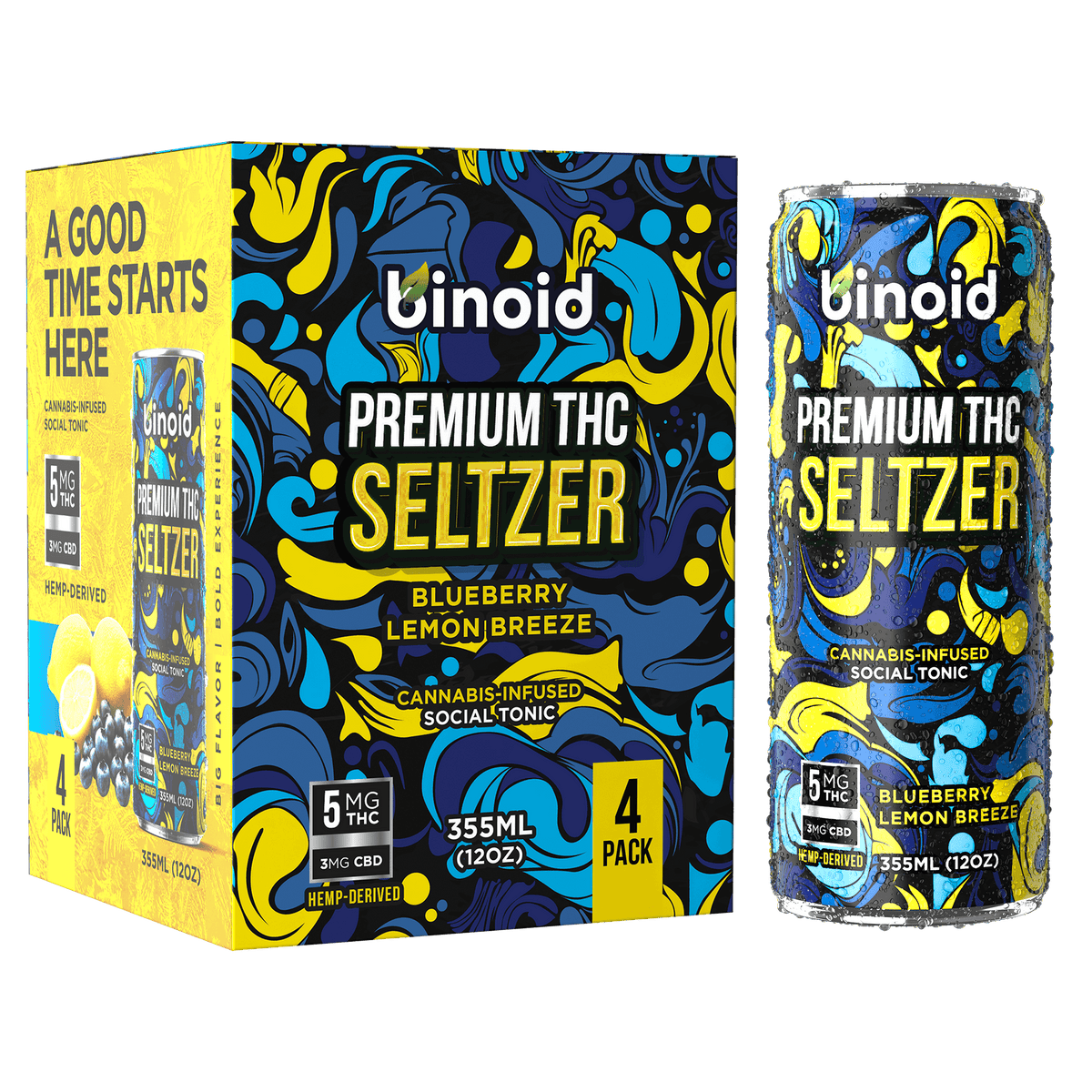 Binoid THC Seltzer – Good Vibes Cannabis Drink (4 Pack) Coupons & Deals