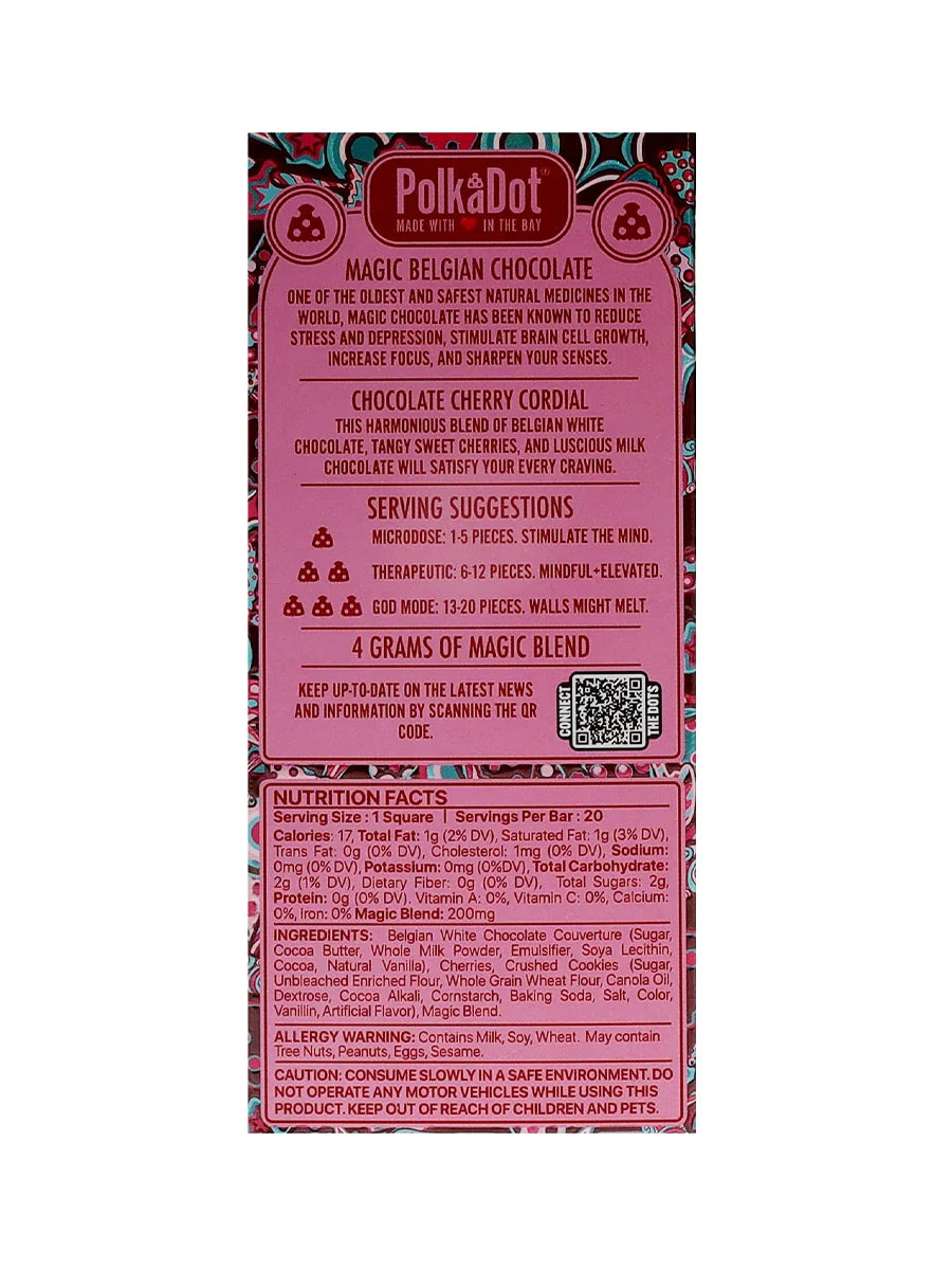 Chocolate Cherry Cordial PolkaDot Magic Mushroom Belgian White Chocolate 200mg Magic Per Piece