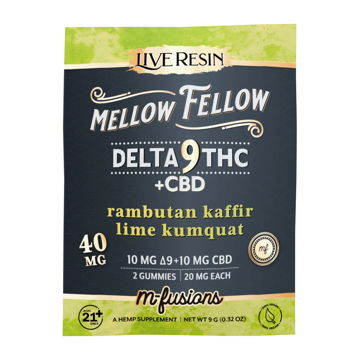 Mellow Fellow Delta 9 Live Resin Gummies 40mg 2 ct. - Rambutan Kaffir Lime Kumquat