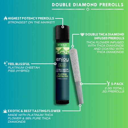 Enjoy Hemp 2.5g Mega Potency Double Diamond THCA Prerolls for Bliss- Platinum Cheetah Piss (Hybird) Coupons & Deals