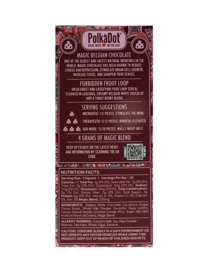 Forbidden Froot Loop PolkaDot Magic Mushroom Belgian White Chocolate 200mg Magic Per Piece