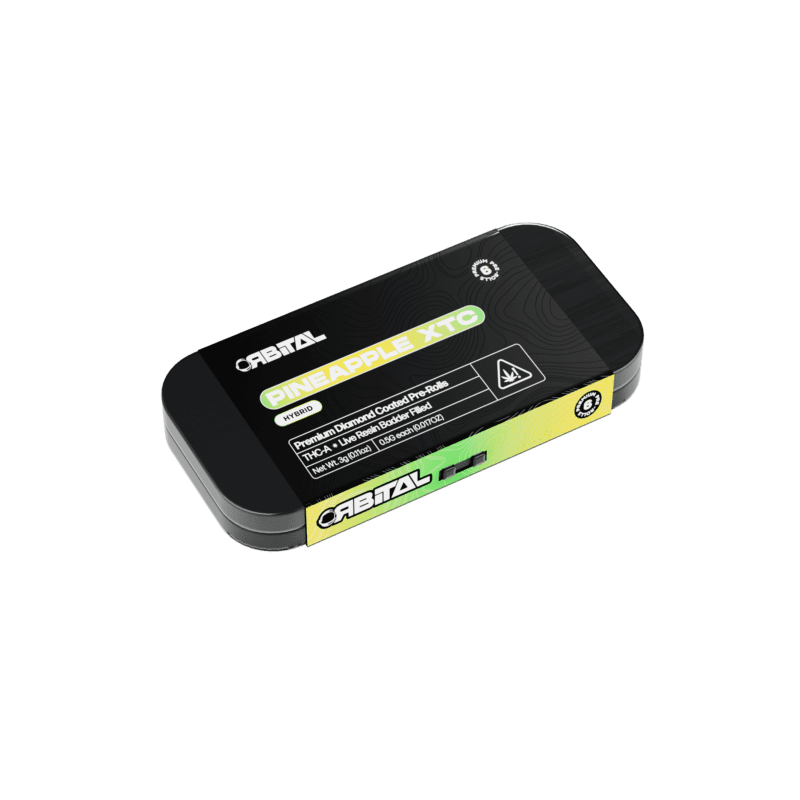 Orbital Pineapple-XTC THCA Pre-Rolls are here to take your smoking experience to a new dimension. Diamond-coated and packed with live resin badder, these premium pre-rolls offer an indulgent and smooth flavor with every puff. Crafted in small batches for ultimate quality, they deliver a rich, dessert-like experience that’s perfect for the adventurous smoker. Ready for an out-of-this-world trip? Grab yours now and get ready for lift-off!