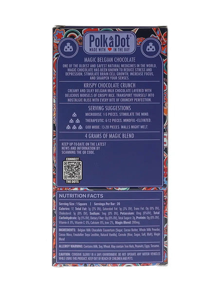 Introducing the Krispy Chocolate Crunch PolkaDot Magic Mushroom Belgian White Chocolate, an irresistible fusion of velvety white chocolate, crunchy rice cereal, and the subtle enchantment of magic mushrooms. Each piece is infused with 200mg of magic mushrooms, offering a delightful and enchanting experience with every indulgent bite.