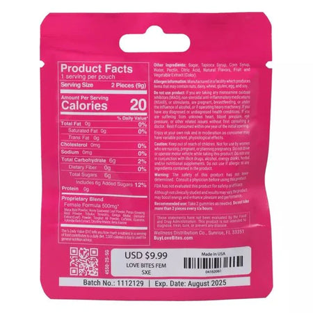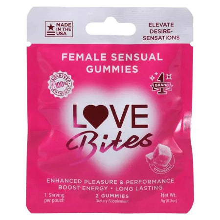 Elevate your pleasure with strawberry-flavored Love Bites gummies! 🍓 Take two gummies an hour before the fun begins to boost your energy and enjoy long-lasting sensations. These sweet treats are designed for enhanced desire and performance, making every moment more exciting. Experience how good you feel and how aroused you get with Love Bites! 💕 Discreet packaging means your secret's safe.
