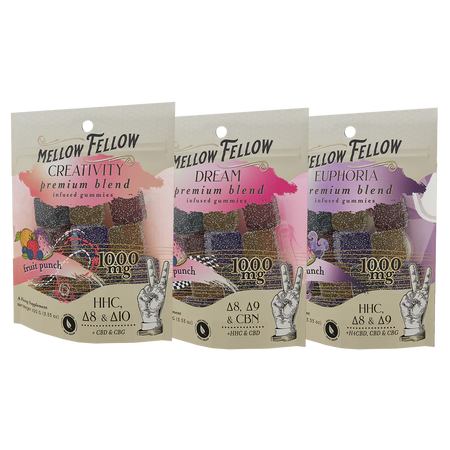 Elevate your edible experience with our M-Fusions Blends Bundle, featuring Euphoria, Creativity, and Dream blends. Each 20-count bag contains a tantalizing mix of Fruit Punch flavors. Indulge in waves of euphoria, ignite your creativity, and drift into peaceful sleep with these expertly crafted treats. Perfect for any occasion, our infused edibles promise a symphony of flavors and sensations that will leave you craving more.