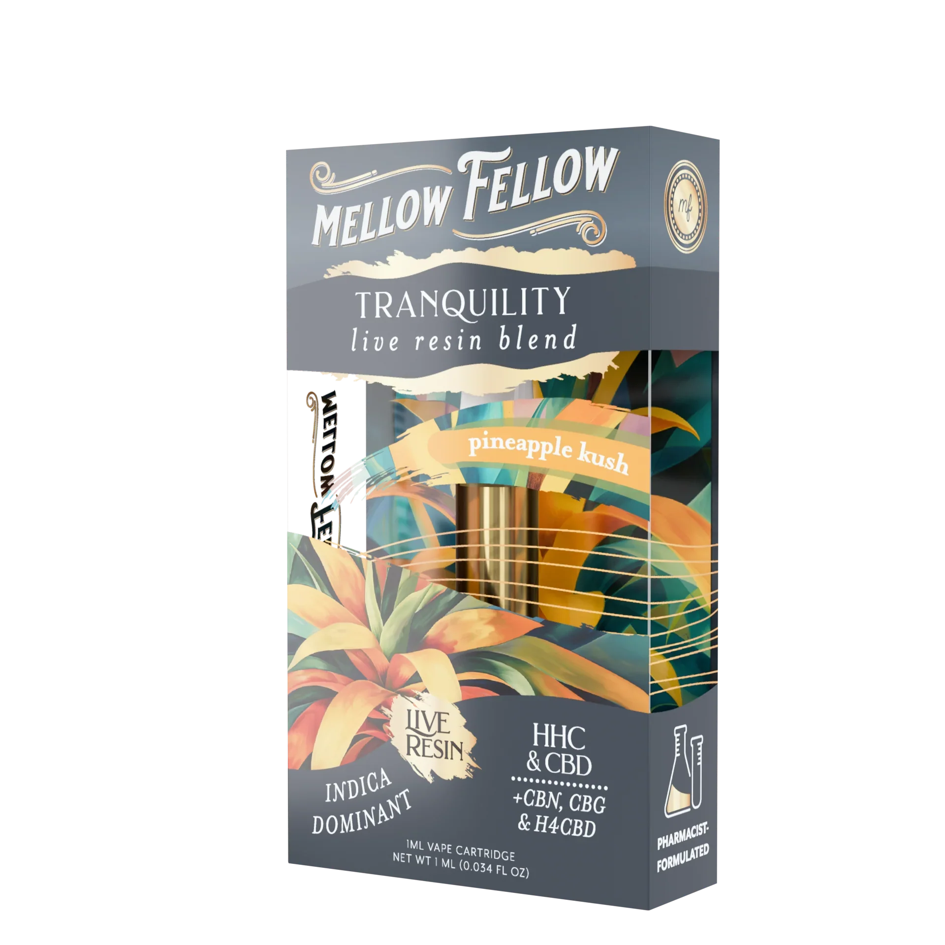 Mellow Fellow Tranquility Blend 1ml Live Resin Vape Cartridge - Pineapple Kush (Indica Dominant)