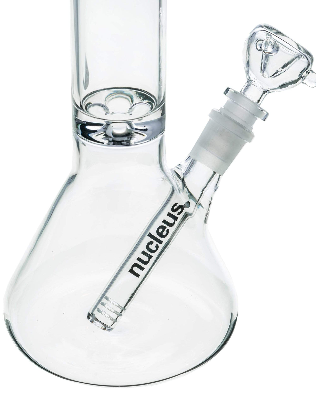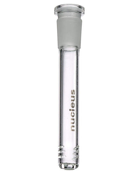 Have a Nucleus water pipe but have broken the downstem? Get the Replacement Downstem that fits most Nucleus products! It is a 4" 18mm to 14mm clear glass downstem that has Nucleus branding on it. The downstem can hold 14mm bowls in any piece that has an 18mm joint and the necessary space in its chamber. Slits at the bottom of the Replacement Downstem diffuse your smoke for a more smooth hit.