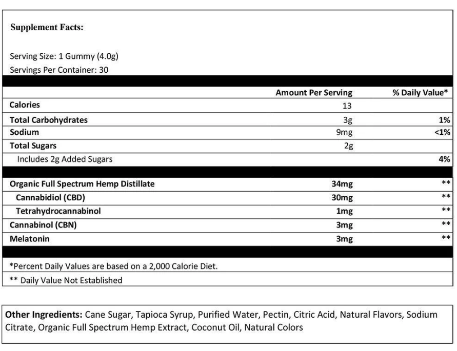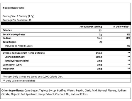 - Powerful Sleep Support: Infused with 30mg of CBD and 3mg of CBN, these gummies work synergistically to ease the stresses of the day and promote tranquil nights.