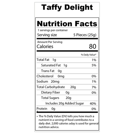 Float into bliss with Taffy Delights, now in a single-serve pack perfect for wherever life takes you. Each piece begins with a crisp snap, followed by that familiar chewy magic that melts in your mouth. Sweet, light, and always ready to lift your spirits, Taffy Delights are perfect for a moment of joy, no matter where you are.