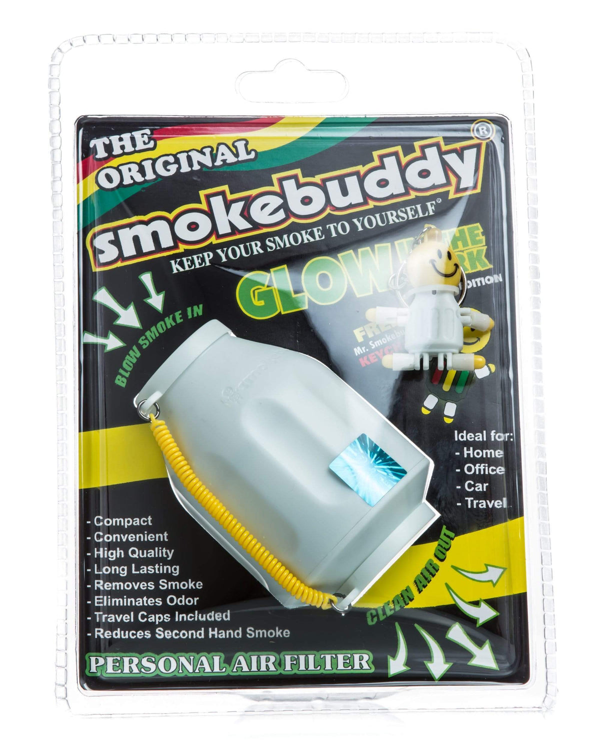 The Original Smokebuddy is the ultimate air purifier. This device removes all odors given off by smoke. Feel free to smoke wherever you please because no one will smell a thing with the SmokeBuddy. Simply remove the front and rear cap, exhale, and let Smokebuddys carbon filter do it's magic. Includes a free keychain light. Available in your choice of color.